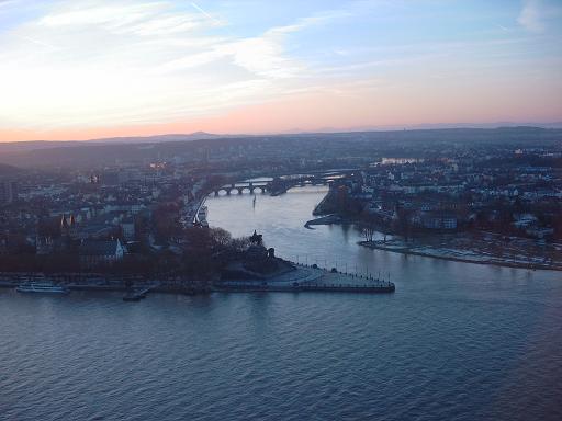 This was the very first trip we made in Germany. Deutsches Eck where the river Mosel joins the Rhine.         From the fortress Ehren-Breitstein we had a wonderful view.